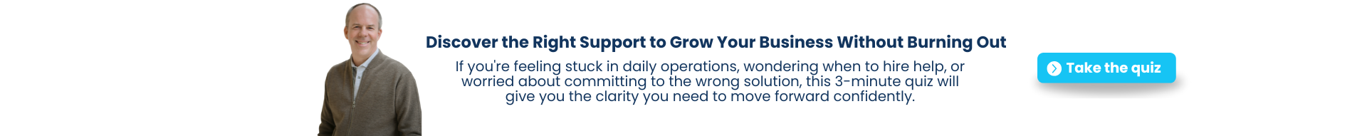 Simply click the button below and rate the following statements on a scale from 1-5. In just a few minutes, you’ll gain personalized insights into whether a fractional COO can help you streamline operations, scale efficiently, and reclaim more of your time. Completing this quiz will give you the clarity you need to confidently take the next followings in growing your business.
